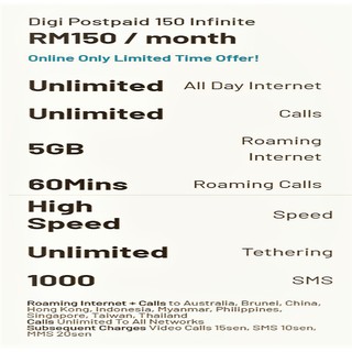 Daftar untuk digi postpaid 150 infinite dan digi postpaid 100 infinite sehingga tempoh yang ditentukan oleh digi.